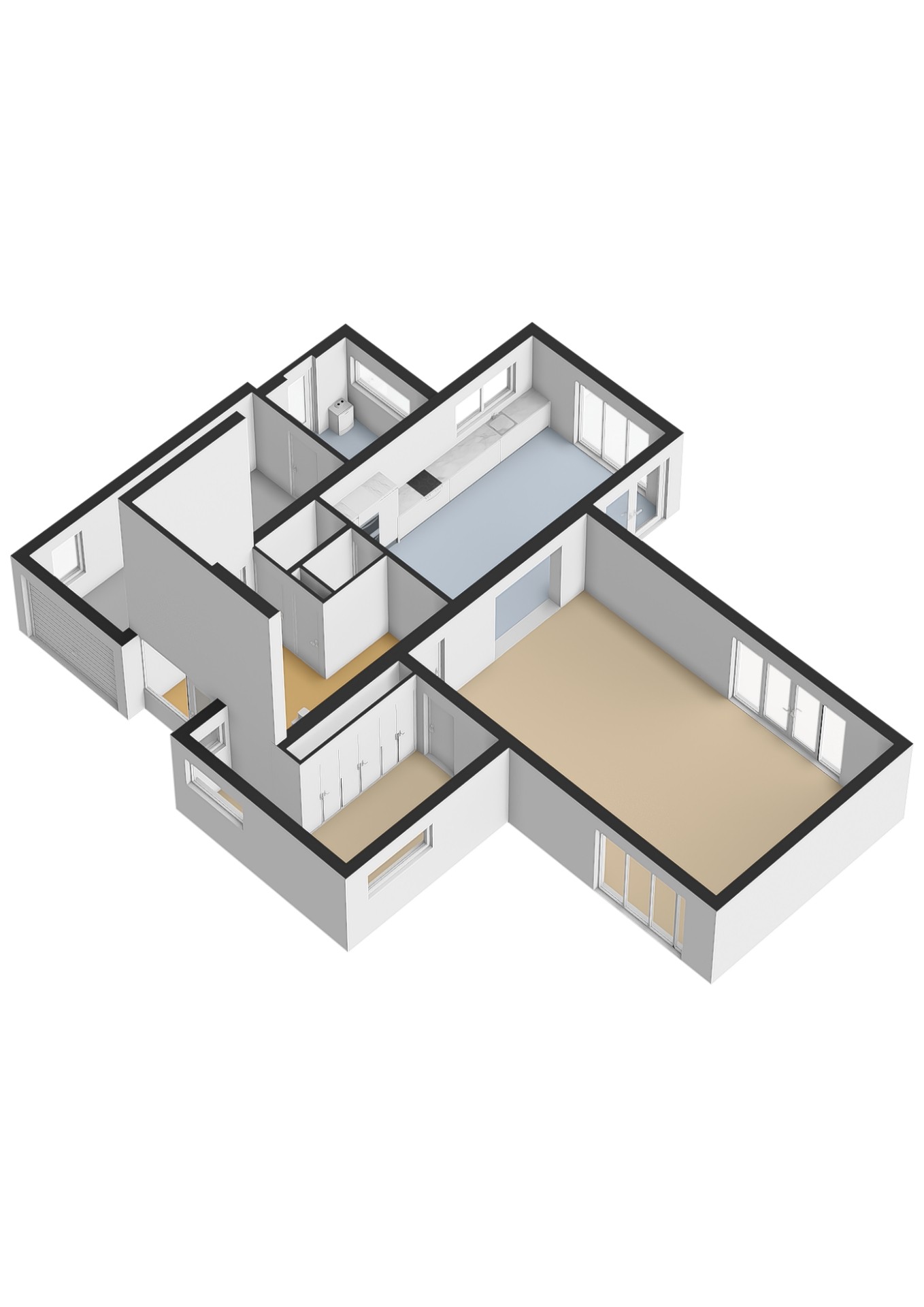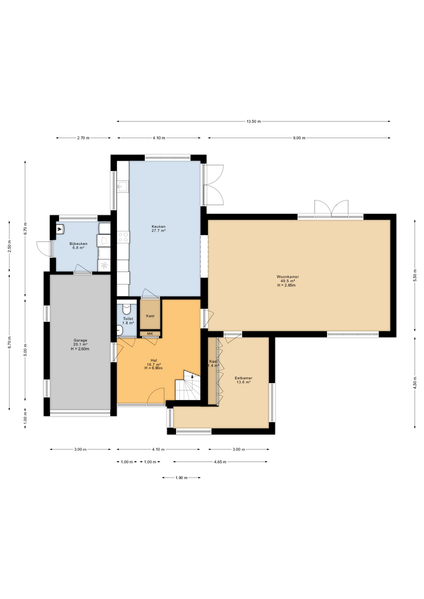 - eventueel afsluitbare woonkeuken van ca. 28 m² met openslaande tuindeuren