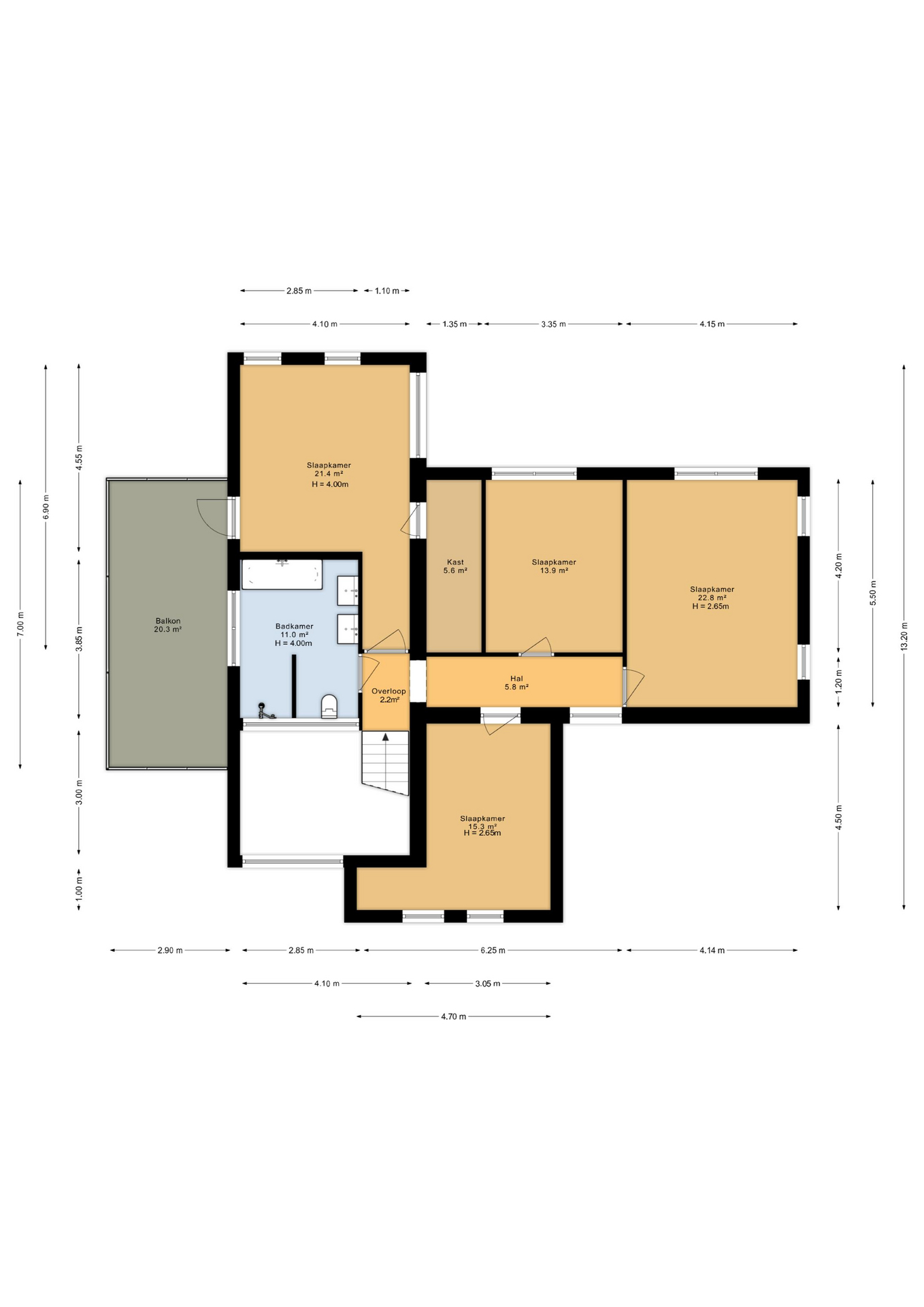 - 4e slaapkamer van ca. 22,8 m²