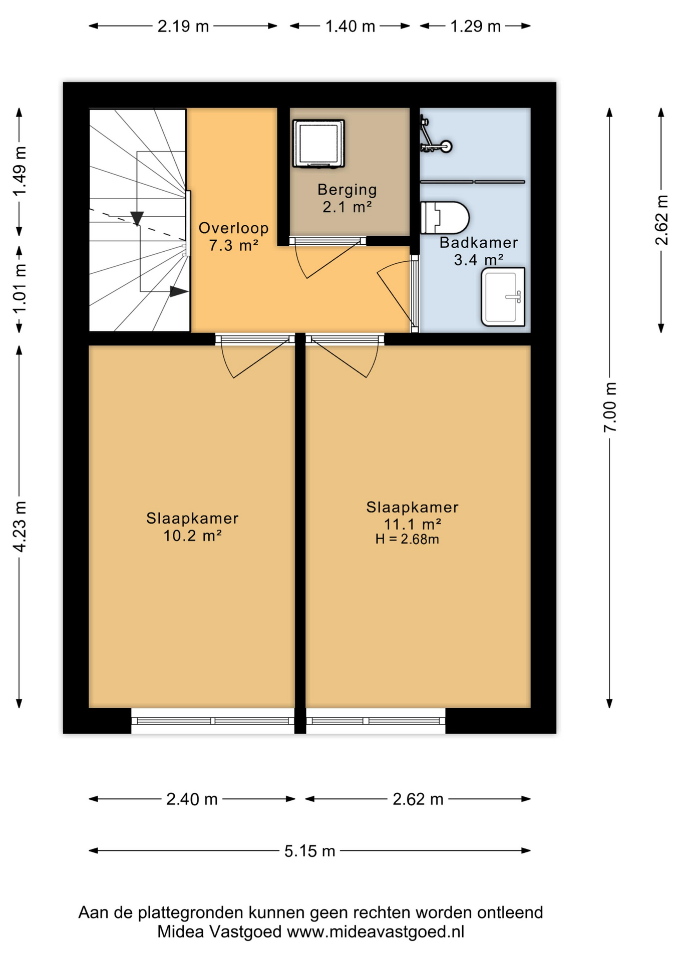 - 2e ruime slaapkamer aan voorzijde (11m²)