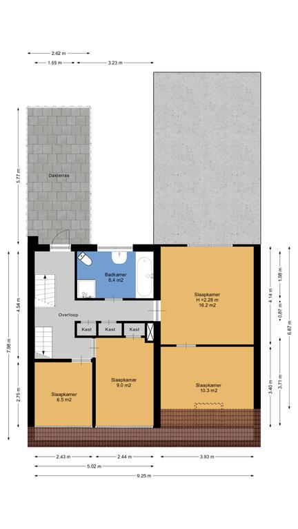 - 5e slaapkamer aan achterzijde met dakkapel (2,54m x 4,07m)