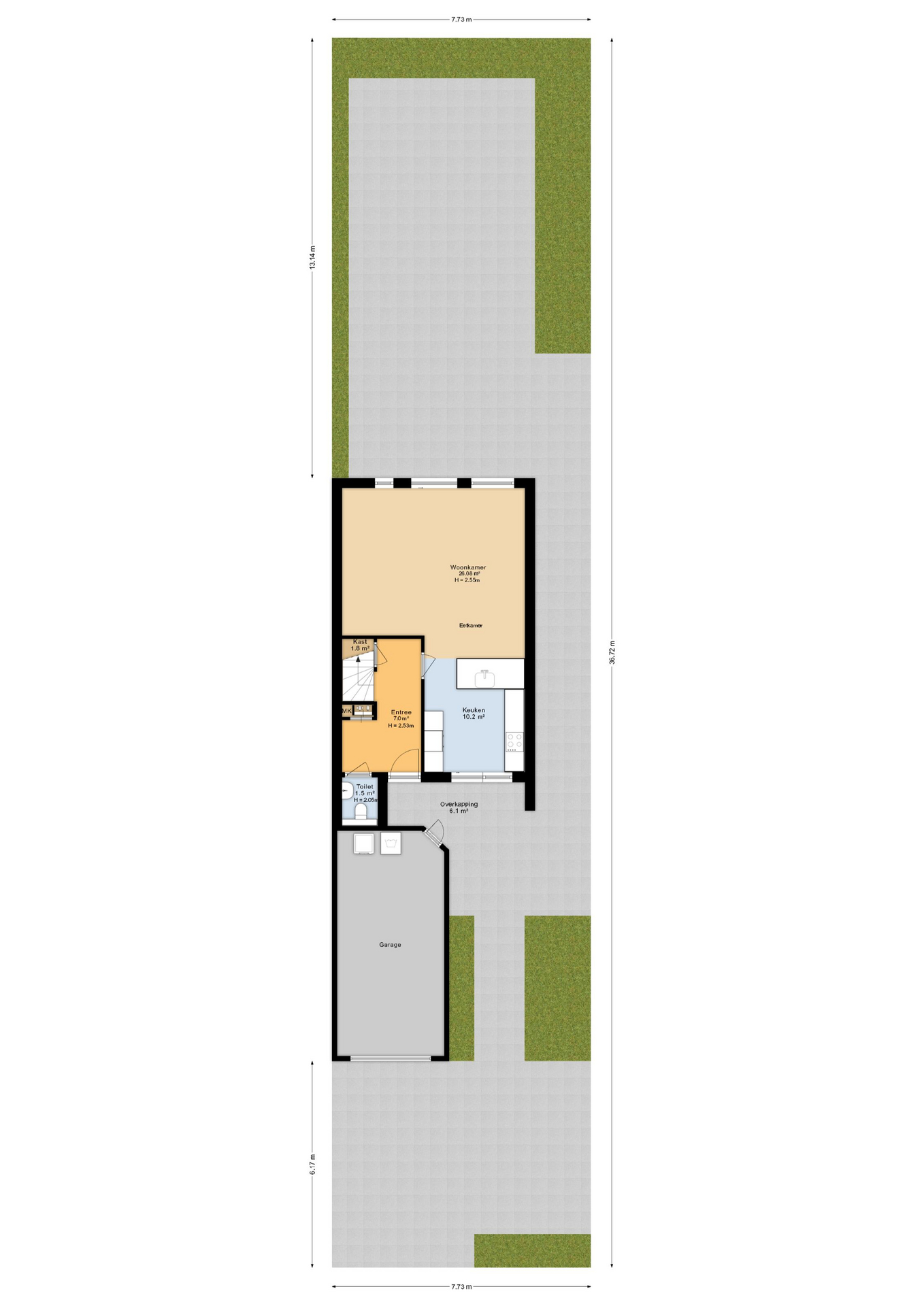 Via de voortuin bereikt u de entree van de woning. Binnen komt u in de hal met meterkast, toilet, trapopgang en toegang tot de woonkamer. De lichte woonkamer van circa 26 m² heeft een prettige indeling en staat in directe verbinding met de tuin via een schuifpui, wat zorgt voor veel lichtinval en een fijne overgang tussen binnen en buiten. Er is voldoende ruimte voor een comfortabele zithoek en een royale eettafel. De nette open keuken grenst aan de woonkamer en is praktisch ingericht met diverse inbouwapparatuur en ruime werk- en bergruimte. Dankzij de schuifpui is er veel lichtinval en directe toegang tot de voortuin.