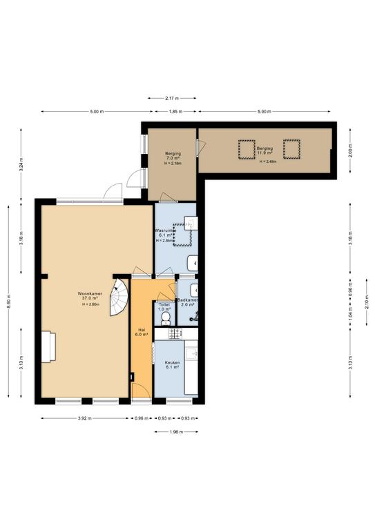 - twee inpandige bergingen voor opslag