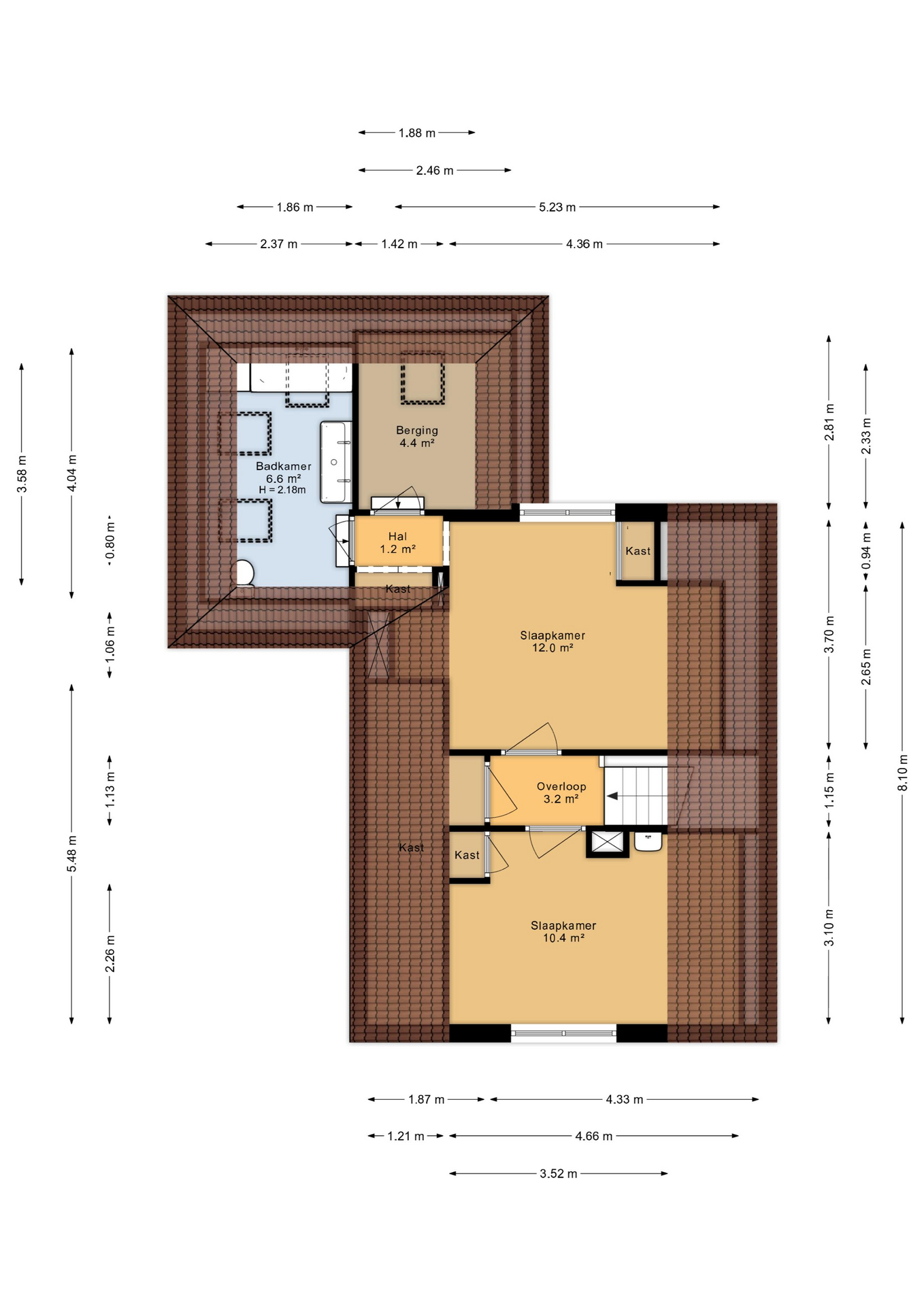 - slaapkamer 1 aan voorzijde van de woning met wastafel (afm. 3,10m x 3.52m)