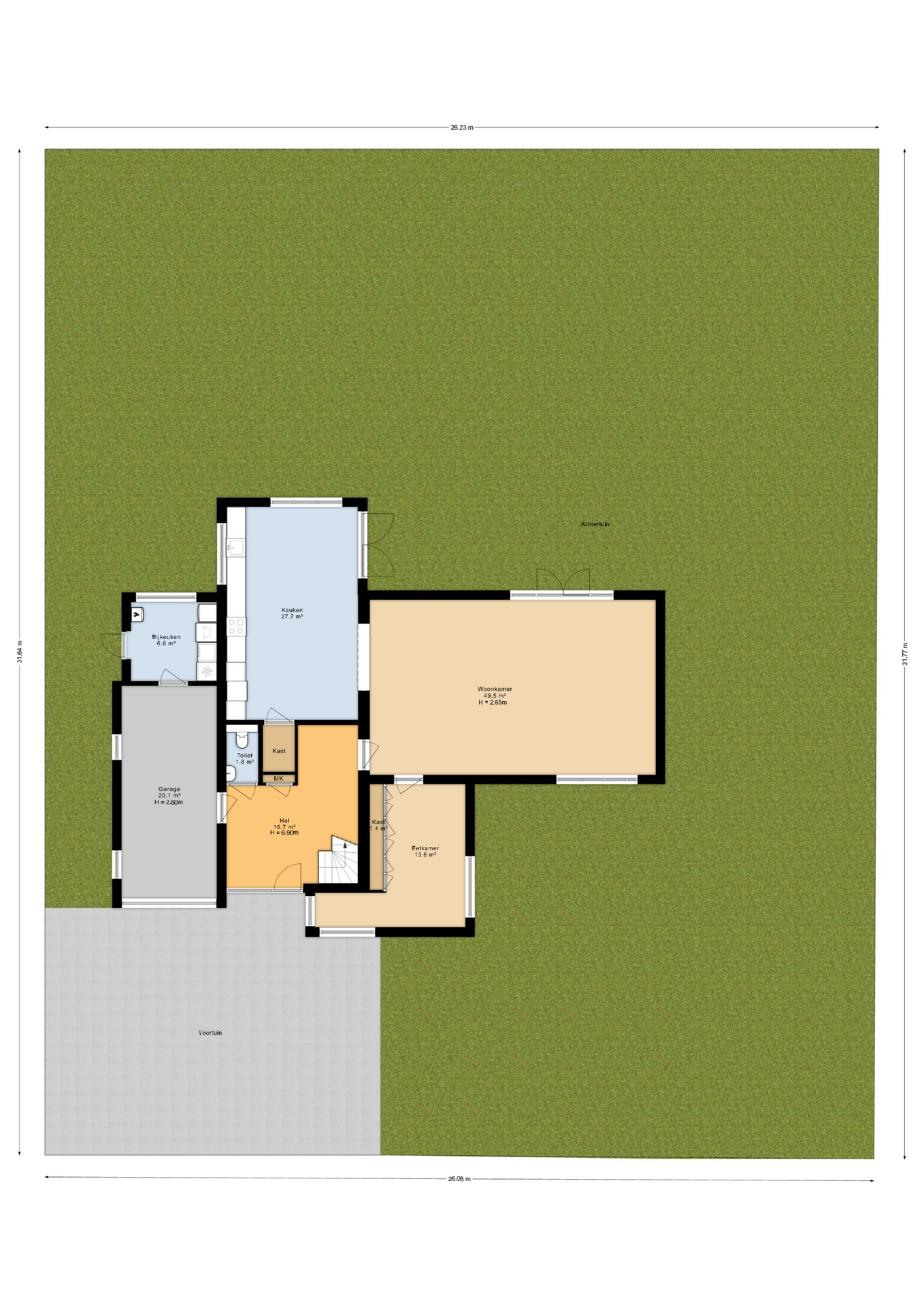 - eventueel afsluitbare woonkeuken van ca. 28 m² met openslaande tuindeuren