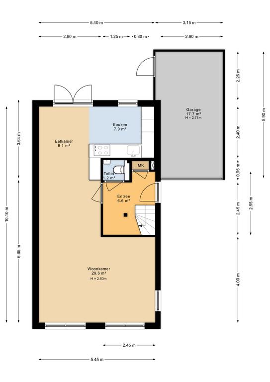 - 2e slaapkamer aan voorzijde (afm. 2,95m x 2,85m)