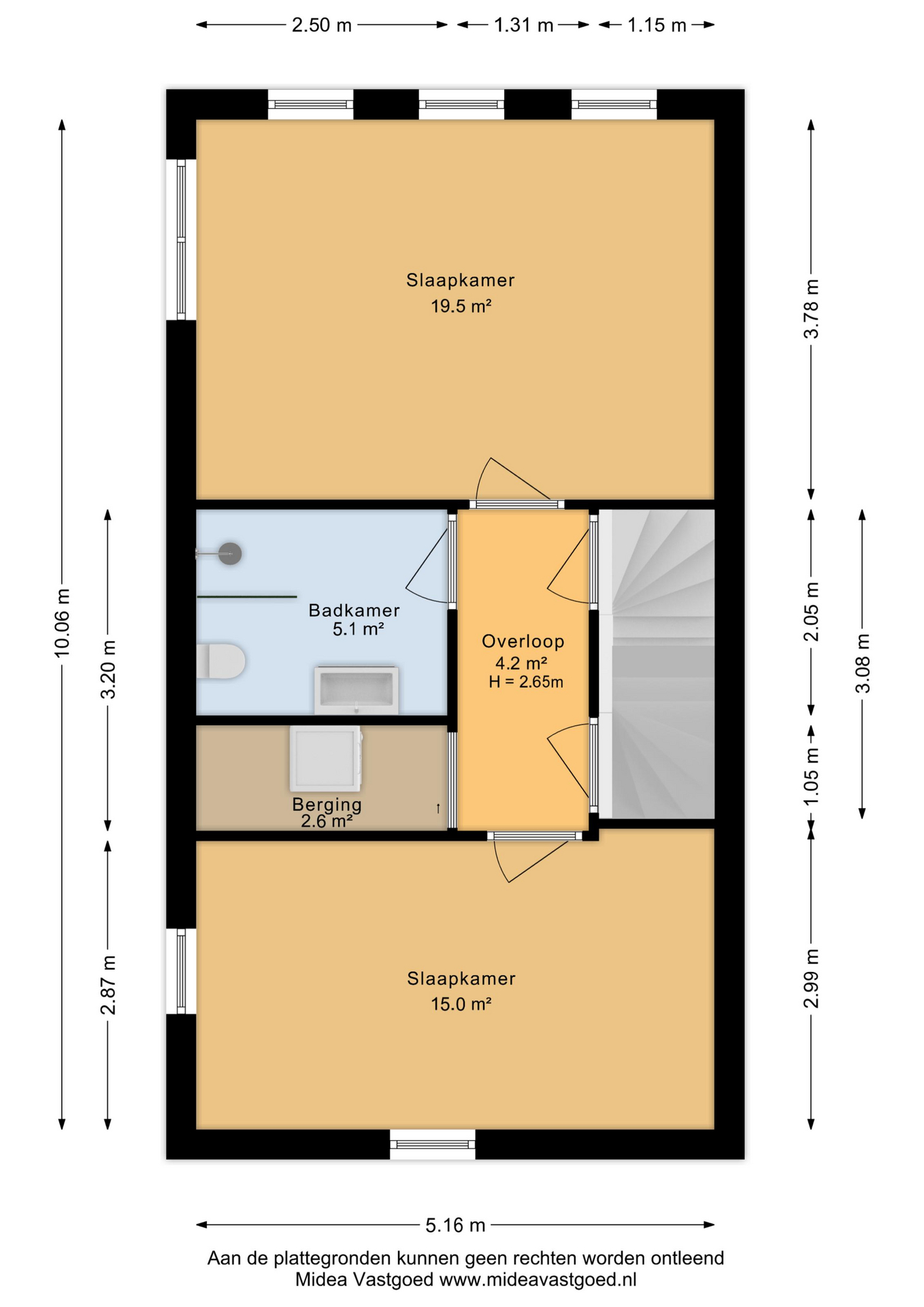 - 3e slaapkamer (afm. 5,16m x 3,78m)
