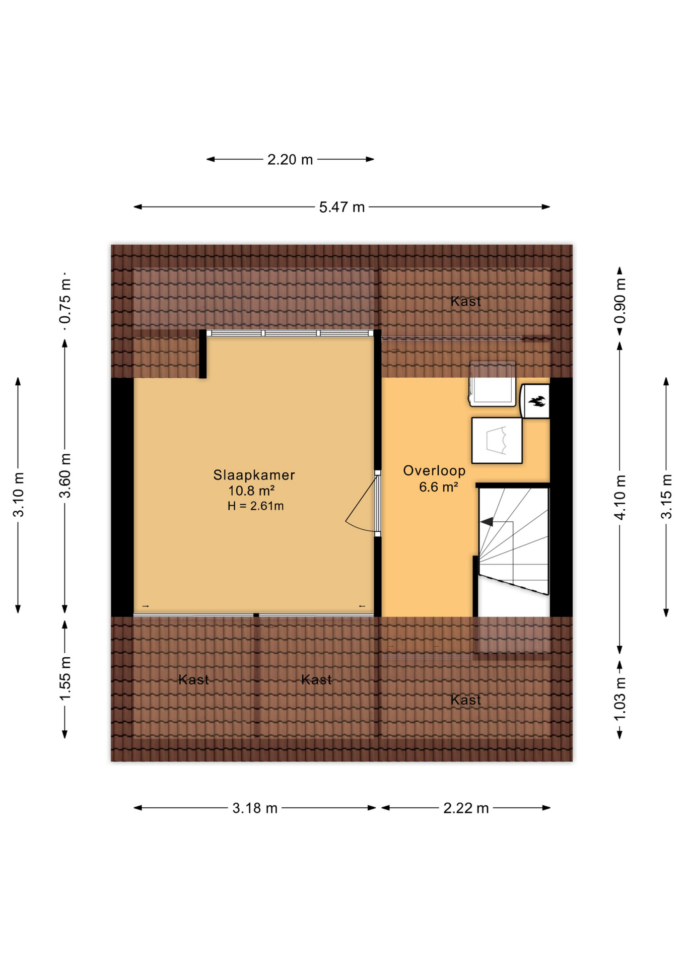 - derde slaapkamer met dakkapel (afm. 3,60m x 3,18m)