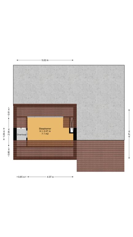 - 5e slaapkamer aan achterzijde met dakkapel (2,54m x 4,07m)
