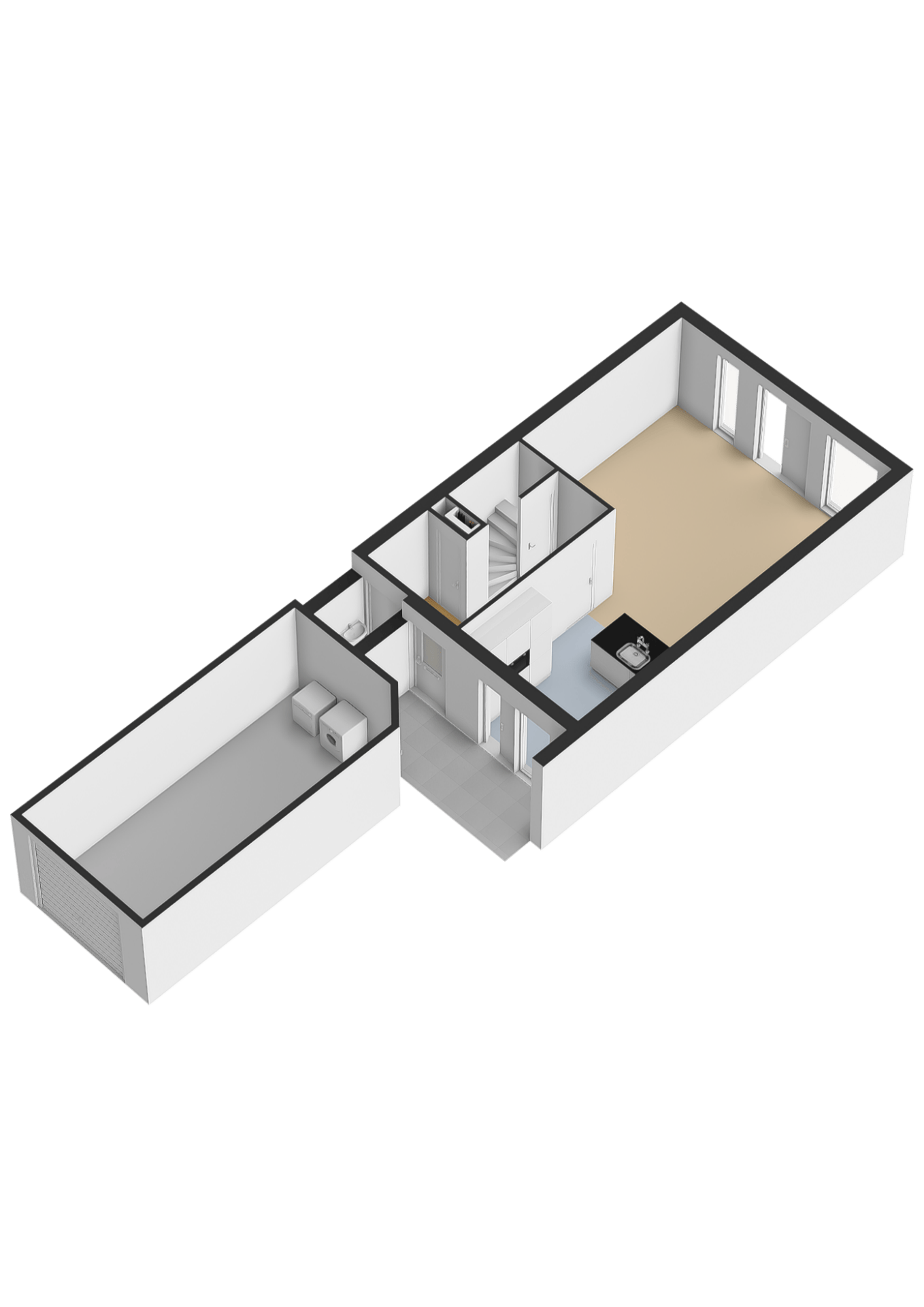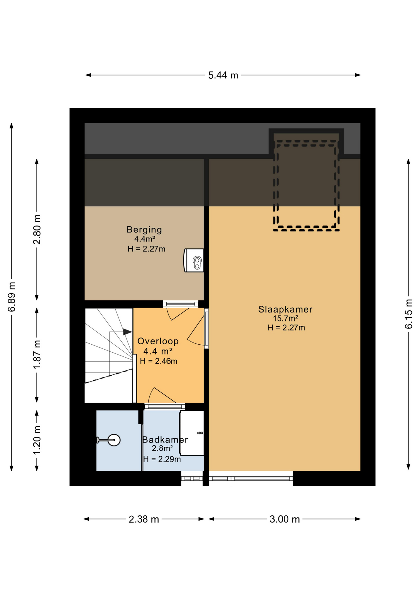 - derde slaapkamer aan achterzijde (6,7 m²)