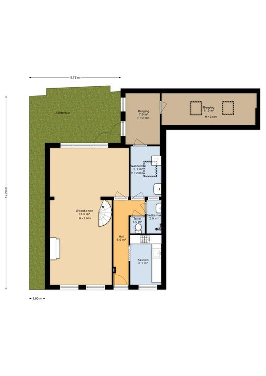 - twee inpandige bergingen voor opslag