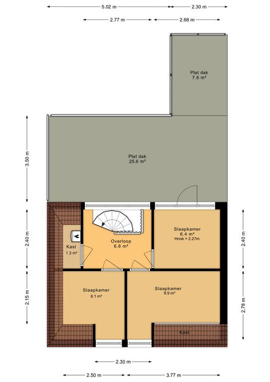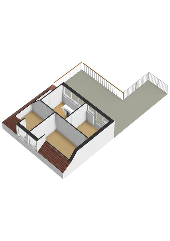 - slaapkamer 3 aan voorzijde van de woning met toegang tot plat dak (afm 2,40m x 2,68m)