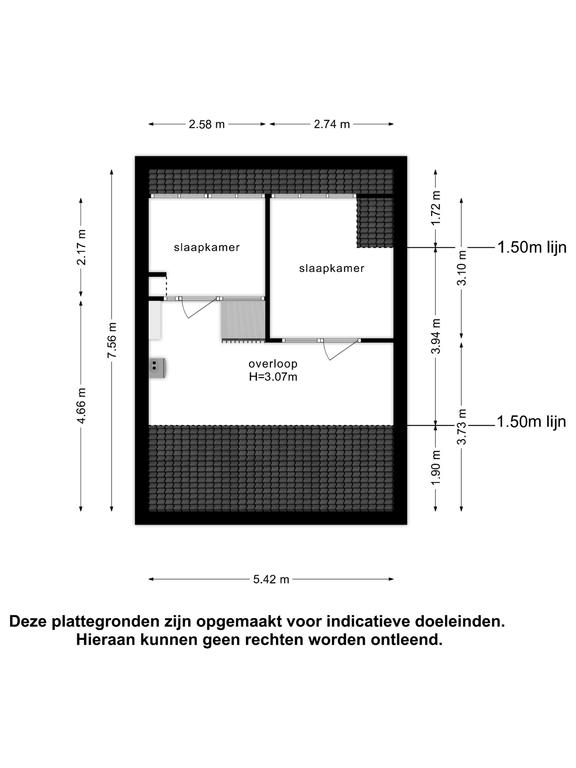 - vijfde slaapkamer met dakkapel (afm. 3,10m x 2,74m)